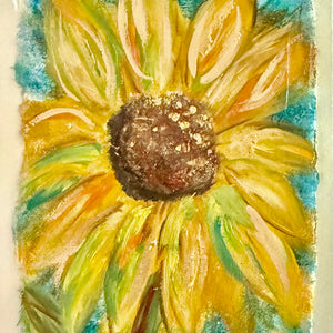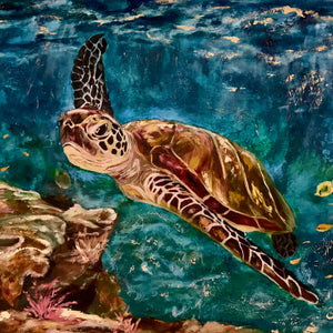 Luminous textures and layers of symbolism in her art mirror the complexity of the human spirit. Gold appears as a symbol of divine insight, truth, and the sacred layers of our inner world. Contact her for a personalized painting filled with symbolism, texture, and gold.